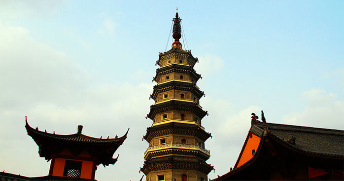 能仁寺位于江苏省淮安市涟城镇中山路西首,距周恩来纪念馆北约30公里,南濒碧波荡漾的古黄河,东依风光旖旎的涟漪湖,西临通贯南北的宁连高速公路,昔日誉为“涟水八大景点”之一。能仁寺始称“文殊院”,后改“承天寺”(又名“承天院”),宋仁宗时易名为“能仁教寺”,简称“能仁寺”,此名一直沿用至今。该寺始建于唐初,距今至少有1400年历史;寺内妙通塔,始建于公元1023年,至今已有980多年历史。与月塔并称"姐妹塔",内供妙通法师舍利子、金棺等物,历经元、明、清三朝,1948年毁于国内战争,2001年9月重建,塔身八角形,塔高68.88米,地上7层,地下1层地宫,总建筑面积1719平方米。