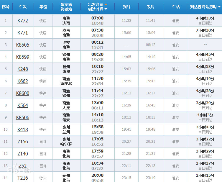 您当前位置:首页 < 旅游服务 < 出行指南 < 淮安火车站-列车时刻表