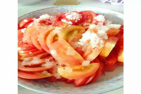 夏日家里必备的凉菜,简单易做,将西红柿洗净切片,用适量白沙糖拌一拌即可实用。不仅生津止渴,还可健胃、消食积。