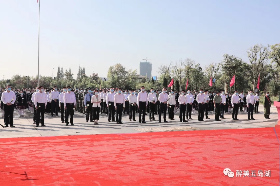 烈士陵园内,松柏苍翠挺拔,烈士纪念碑巍然耸立,气氛庄严肃穆。9时,公祭活动正式开始。全场高唱《中华人民共和国国歌》,激越昂扬的旋律回荡在烈士纪念碑上空。