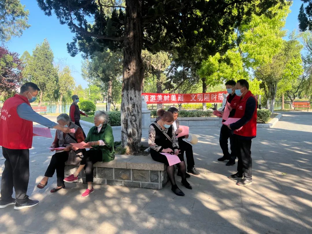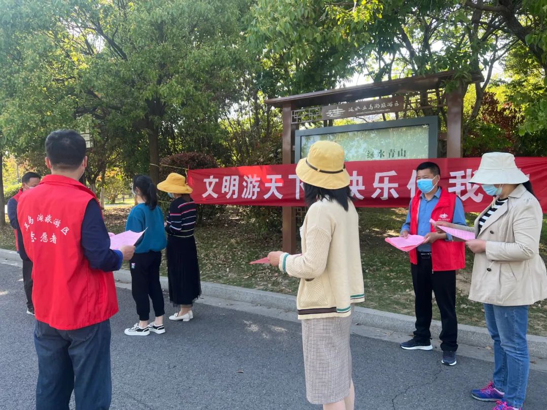 景区内有志愿者向游客发放文明旅游及文明出行宣传单,并号召大家假期出游时,要爱护环境,不要随意丢弃废弃物;要举止得体,不随地吐痰、不大声喧哗等,树立文明意识,弘扬文明新风尚,共同营造文明和谐的旅游环境。同时做好个人疫情防控,共同助力涟水创建全国文明城市。