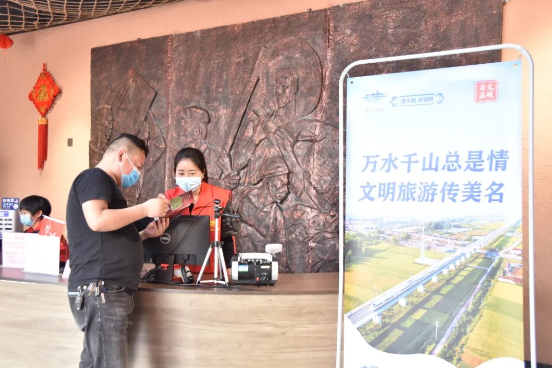 “您好,这是我们的景区资料,有任何关于景区的咨询,您都可以向我了解,再送您一张景区门票。”活动现场,来自各个景区的工作人员,身穿红马甲,化身志愿者,向过往的居民和游客散发景区宣传资料,宣讲文明旅游理念。