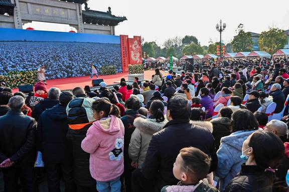 在开幕式上,民俗展演队、玩偶特型队等约100余人围绕五岛湖景区踩街暖场,通过巡游送福礼,营造满满的惊喜和祝福。在文艺演出中,少儿群口快板相声《十二生肖拜大年》、独唱《想念涟水》、反串表演《梨花颂》、汉服秀《江山无限》、小淮戏《七月七》、舞蹈《满庭芳》、舞蹈《我的祖国》等舞蹈、相声、舞台剧、小品、淮剧等特色节目轮番上阵,每一个节目都融入了浓厚的节日元素和地方特色,演员们用满满的热情和精湛的技艺,让现场观众近距离感受民俗文化和传统艺术的魅力。布艺、烙铁画、玉米皮创意编织、剪纸、棕编、虎头鞋、鸡糕捆蹄等非遗项目吸引了不少市民前来采购,特别是嵇氏蜂蜡、郑氏骨伤热敷、蒋氏膏药等中医药专家义诊,让市民们进一步感受到非遗文化,打造了沉浸式的消费场景,丰富了市集的趣味互动体验。书法惠民环节更是精彩纷呈。书法家们挥毫泼墨,将一副副吉祥如意的春联送到家家户户,寄托着人们对新一年的美好祝愿。孩子们围在书法家身旁,目不转睛地观看,感受着书法的魅力。