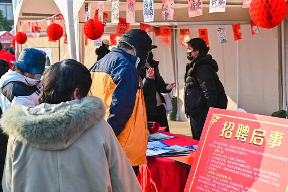 为集中帮扶劳动者就业创业,在今年的年味大集中,还设置了3个招工类摊位,江苏高博智能制造有限公司、淮安新芳杰高科服装有限公司等10余家企业提供了近千余个岗位,为返乡务工人员提供就业机会,进一步助企解难。相关企业还同时开设线上招聘专区,开展直播带岗、云招聘等线上服务,让“线”上就业成为马上就业。“快过年了,还没找到合适的工作,心里总觉得不踏实,”家住五岛湖公馆的王女士说,为了找工作她曾去工业园里询问过企业的招聘信息。但没想到来赶大集就能见到这么多企业招聘,“赶大集这一上午我咨询了相关招聘企业,登记了信息,有了初步意向,真是太好了。”