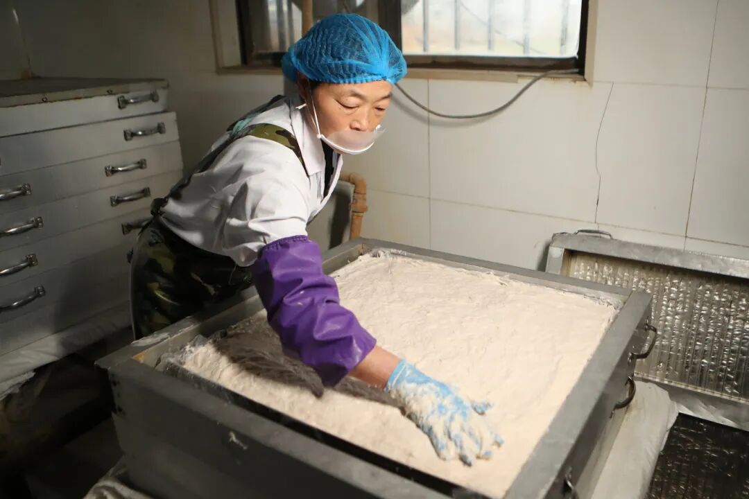 鸡糕风味的传承,靠的是一代代手艺人的匠心坚守。涟水县高沟镇金山鸡糕作坊负责人金山,便是当地的传承人之一。他四十余载潜心制作鸡糕,练就了一手绝活。