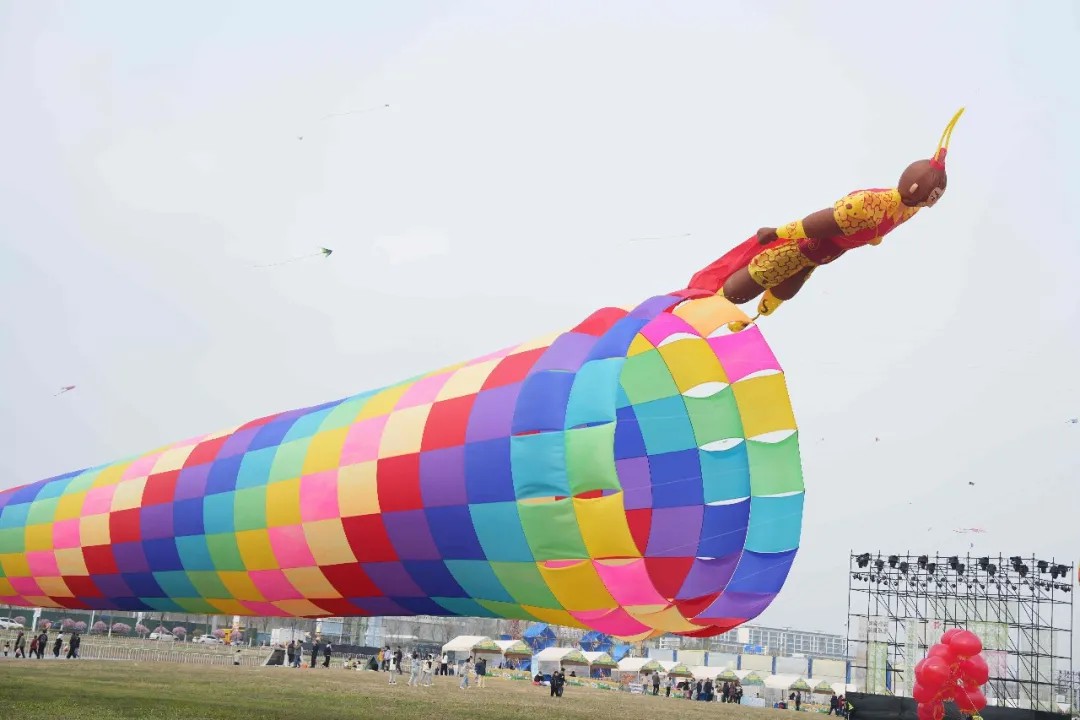 活动期间,每天都有造型各异的巨型风筝准时升空:35米的滚筒风筝、300平方米的金鱼风筝、15米的齐天大圣风筝、30米的鳐鱼风筝、13米的熊猫风筝、40米的章鱼风筝,还有滚地龙、鲸鱼、远古巨兽、眼镜蛇以及哆啦美、叮当猫等卡通形象风筝,天空被这些色彩斑斓的“大家伙”填满,引得孩子们不时仰头欢呼,整片草坪洋溢着纯粹的快乐。