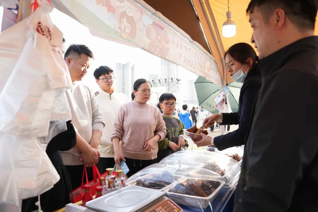 跳蚤市场人气旺,学生们拿出看过的书、闲置的玩具、手作工艺品来交换或出售,交朋友比做生意更起劲。国缘宾馆直接将后厨搬到现场,打造的“春日撒欢计划”美食专场备受青睐,卤味、点心、热菜、甜品等一一陈列,让市民直呼“来了就挪不动步”。刚出锅的干煸龙虾香气扑鼻,卤猪蹄、牛肉、鸭脖等三十多种美食价格亲民。“我们就是想让大家尝尝地道的涟水味道。”工作人员一边介绍,一边熟练地为游客打包。全季酒店借势推出春日特惠,玩累的游客可随时入住,享受“推窗见景”的惬意。