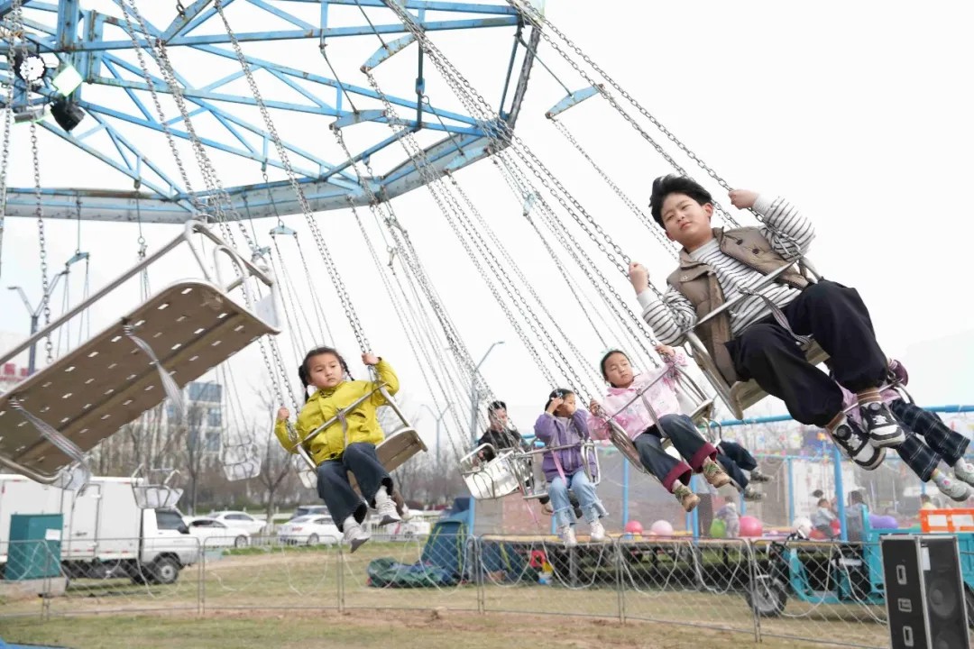 “我早就盼着春假了!”小学生浩浩手握风筝线,小脸晒得通红。一旁的妈妈笑着说:“一家五口都来了,我们还一起画了风筝,孩子玩到天黑都不愿走。”草坪上人流不息,大人孩子争相放飞手中的风筝。古装快闪、丢手绢游戏、“我要上秋晚”选拔、唱歌直播、达人打卡、公益相亲等活动轮番上演。白日风筝翩翩,夜晚篝火暖暖,欢乐从早持续到晚。