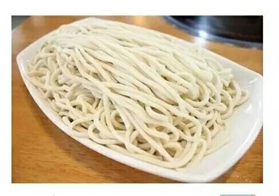 手擀面的乡土称法。现在的年轻人基本已经不会做了,家里只有上了岁数的爷爷奶奶才会做。将面粉、水调制稍干的面团,用手揉均匀,然后平放于案板上,光面向下,用擀杖向四周用力擀开成片状。待面块擀制到一定的程度时,将擀杖卷入其中,用面紧紧包裹在内,并用手反复向外推卷。如此几次后,将其展开,撒上适量的扑面,从另一个方向把擀杖卷入其中,进行推卷操作,然后再展开,撒扑面。以此类推,直至将面团擀成薄片为止。 后,将擀好的面片用刀切成细条状的面条,下入沸水锅中煮3分钟左右即好香喷喷的手擀面。