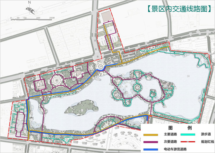 涟漪广场 → 涟漪胜境 → 十二生肖广场 → 兰堂同乐(同乐堂) → 墨香亭 → 米公广场 → 米公亭 → 墨池飞雾(米公洗墨池) → 爱莲亭 → 西苑(盆景园) → 柳岸风荷