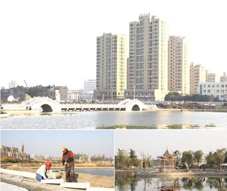 五岛湖公园综合改造工程目前已有9家施工单位进场施工。五岛胜景、松林晴雪、环湖北路等已完成垫层施工,园内景观改造正有条不紊地进行。图为五岛湖公园综合改造工程部分景观及施工场景。