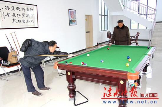 夕阳红文化中心坐落在五岛湖公园北大门西侧,建设面积2252平方米,8月份投入使用。该中心设有供老同志学习用的书画教室、音乐教室、阅览室和健身娱乐的乒乓球室、台球室、棋牌室,室外设有人造草坪门球场、户外文化长廊等,可容纳上千名老同志学习、健身、娱乐,是老年群体活动的 佳场所。图为正在打台球的两位老人,姿势和手法挺专业的!