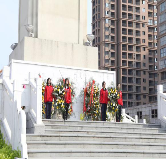 起来起来!不愿做奴隶的人们!……”在雄壮国歌声中,我们怀着肃穆的心情,向傲然耸立的革命烈士纪念碑默哀致敬,缅怀先烈,敬献鲜花。