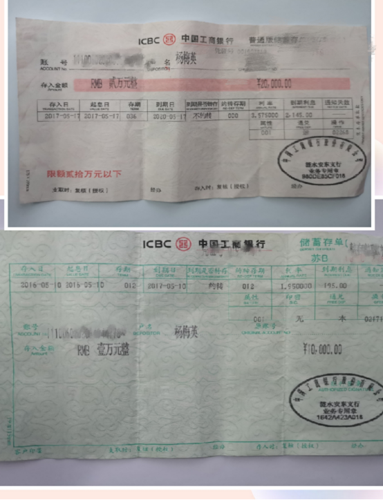 (杨梅英遗失的三万元存款单)