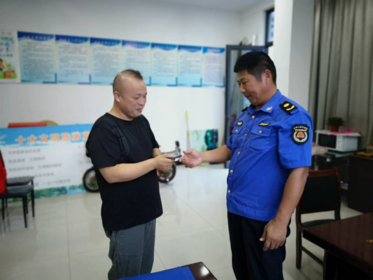安保队员惠玉成在巡逻至同乐路时拾到一部手机,后通过朋友圈找到失主,通过核对号码,确认身份后交还失主。