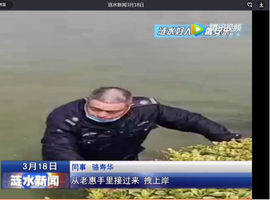 (省电视台播放景区安保队员惠玉成救人事件)