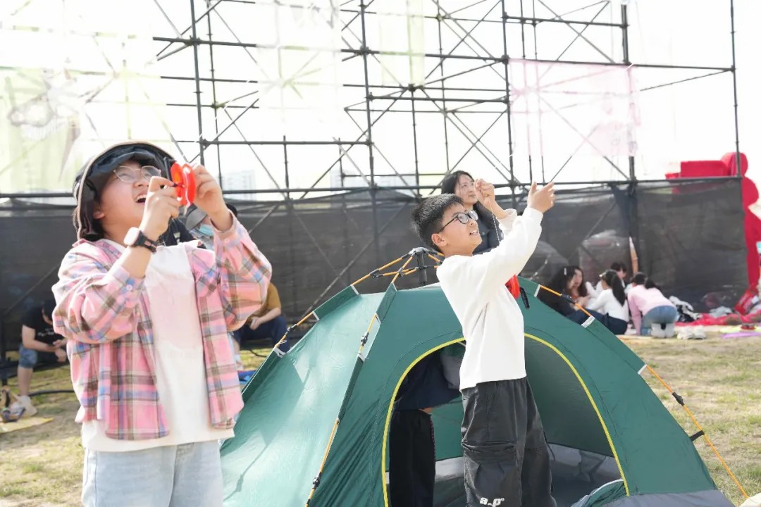 “我早就盼着春假了!”小学生浩浩手握风筝线,小脸晒得通红。一旁的妈妈笑着说:“一家五口都来了,我们还一起画了风筝,孩子玩到天黑都不愿走。”草坪上人流不息,大人孩子争相放飞手中的风筝。古装快闪、丢手绢游戏、“我要上秋晚”选拔、唱歌直播、达人打卡、公益相亲等活动轮番上演。白日风筝翩翩,夜晚篝火暖暖,欢乐从早持续到晚。